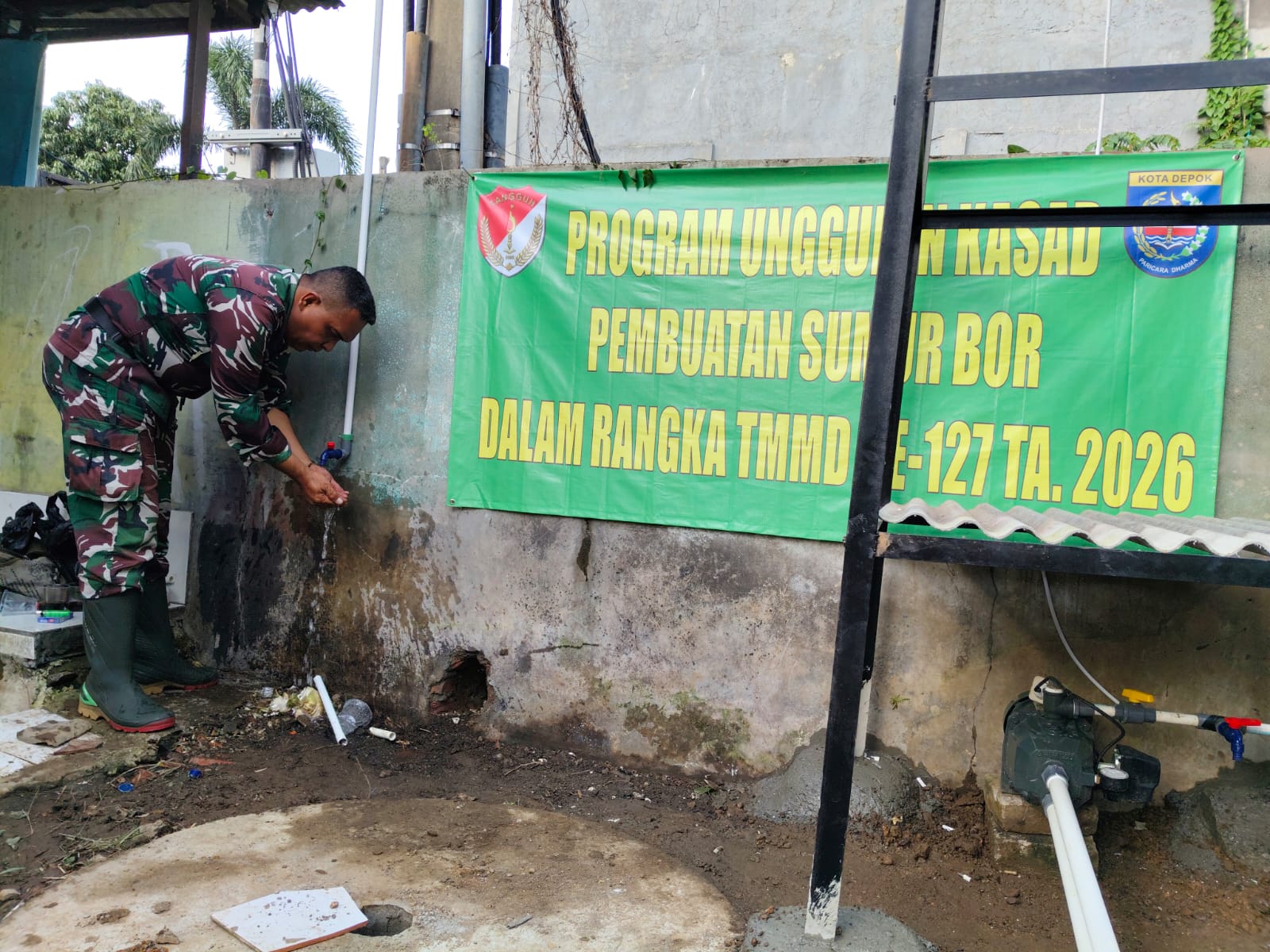 DEPOK, Kompas88News.com – Program TNI Manunggal Membangun Desa (TMMD) Ke-127 Tahun Anggaran 2026 yang dilaksanakan Kodim 0508/Depok terus mempercepat pembangunan infrastruktur dasar bagi masyarakat. Memasuki hari ke-22, pembangunan sumur bor di sejumlah titik di Kota Depok menunjukkan hasil signifikan. Rabu (4/03/2026).