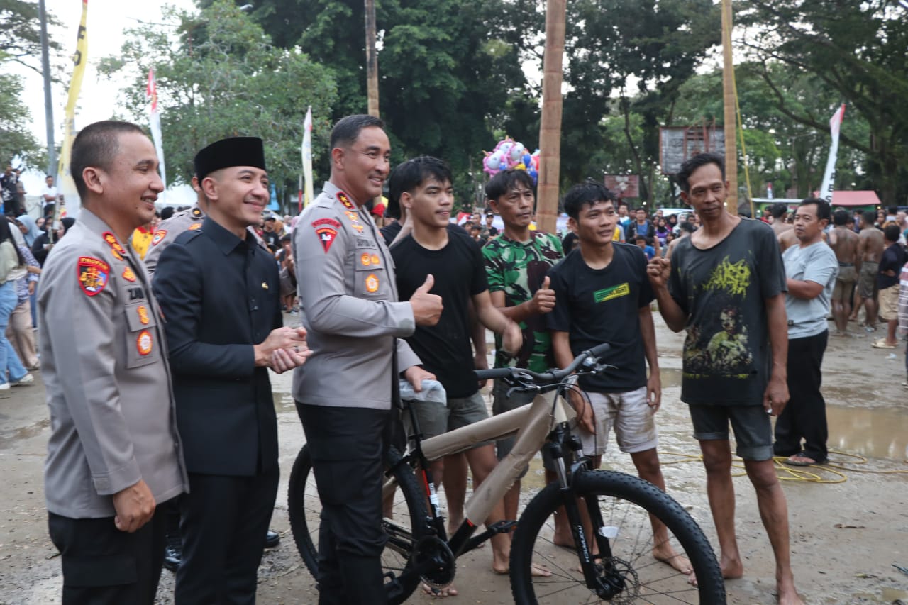 Diakhir acara Kapolda Banten memberikan sepeda gunung kepada salah satu team yang menang, foto bersama. Kapolda Banten menyampaikan apresiasi yang setinggi-tingginya kepada masyarakat Kabupaten Lebak yang telah menjaga situasi Kamtibmas di Kabupaten Lebak aman dan kondusif. Acara berlangsung dengan lancar dan tertib sampai kegiatan selesai.