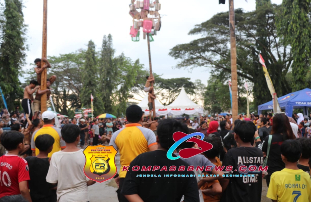 LEBAK BANTEN, Kompas88News.com – Dalam rangka memeriahkan Hari Ulang Tahun Bhayangkara Ke-79 Tahun 2025, Polres Lebak Polda Banten menggelar kegiatan lomba panjat pinang yang berlangsung meriah di alun-alun Rangkasbitung Kabupaten Lebak. Selasa (1/07/2025).