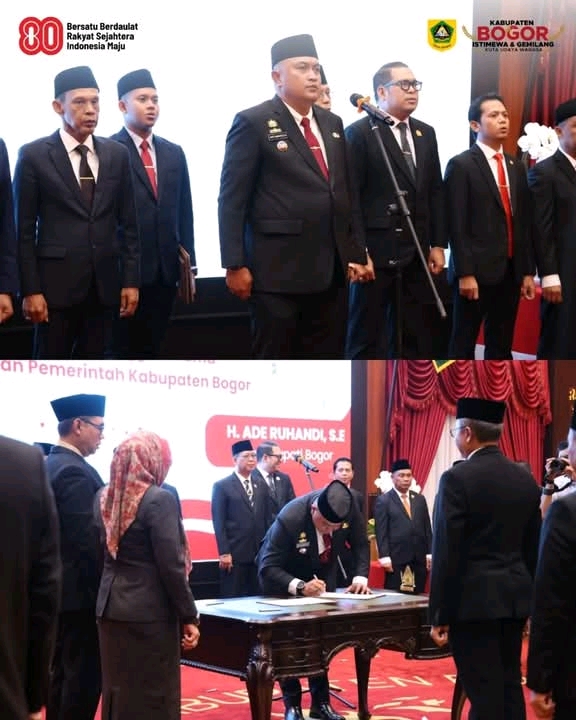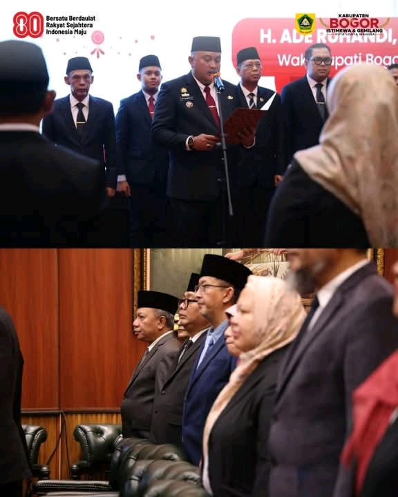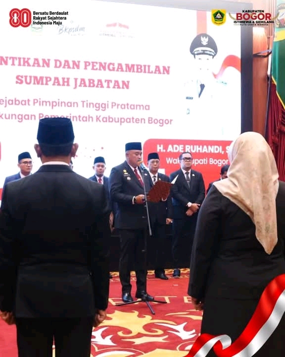 “Malam hari ini di tanggal 13 Agustus 2025 kita melaksanakan pengambilan sumpah janji pejabat eselon II di Pemerintah Kabupaten Bogor. Tentunya mutasi rotasi dan promosi jabatan menjadi sesuatu hal yang biasa dalam tata kelola sebuah pemerintah, dan untuk memperkuat kinerja dan pelayanan publik,” tutur Bupati Bogor Rudy Susmanto kepada Media.