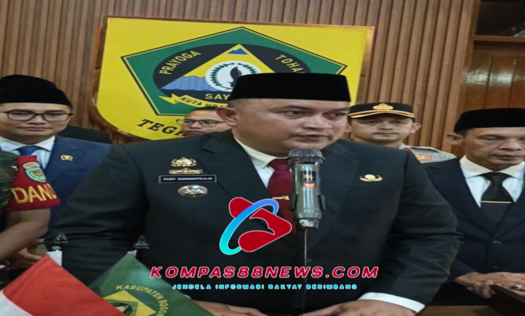KAB.BOGOR, Kompas88News.com – Bupati Bogor Rudy Susmanto, melantik dan mengambil sumpah jabatan tujuh pejabat eselon II di lingkungan Pemerintah Kabupaten (Pemkab) Bogor, yang berlangsung di Pendopo Bupati Bogor. Pelantikan tersebut dihadiri Wakil Bupati Bogor Ade Ruhandi, Kapolres Bogor AKBP Wikha Ardilestanto, jajaran Forum Komunikasi Pimpinan Daerah (Forkopimda), serta para kepala perangkat daerah. Rabu malam (13/08/2025).