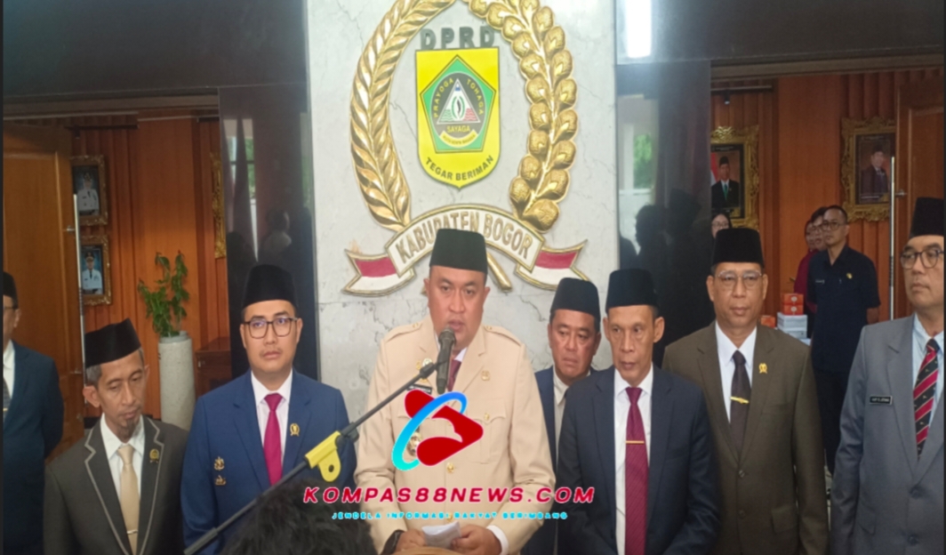 KAB.BOGOR, Kompas88News.com – DPRD Kabupaten Bogor gelar rapat paripurna terkait rancangan peraturan daerah yang sudah ditetapkan menjadi peraturan daerah dan pelantikan Hj.Nurhayati, S Ag sebagai PAW Fraksi Gerindra masa bakti 2024 – 2029. Dihadiri oleh Bupati Bogor rudy Susmanto, Wakil Bupati Bogor H.Ade Ruhandi, Ketua DPRD Kab.Bogor Sastra Winara, Sekda Kab.Bogor Ajat Rochmat Jatnika, Forkopimda dan Para SKPD yang berada di lingkungan pemerintahan Kabupaten Bogor. Jumat (28/11/2025).