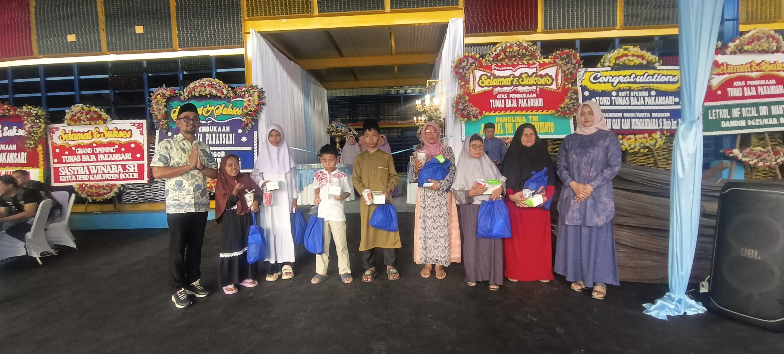 KAB.BOGOR, Kompas88News.com – Pembukaan Tunas Baja Pusat Baja Ringan dan Besi di Pakansari diawali dengan pembagian santunan anak yatim sebanyak 11 orang dan santunan kepada Lansia sebanyak 11 orang, Tausiyah dan Do’a oleh Kiyai H. Nonop Hanafi. Dihadiri oleh Ketua DPRD Kab.Bogor, Dandim Kota dan Dandim Kab.Bogor, Owner dan Manger Tunas Baja Megatama Indonesia, Anggota DPRD Kab.Bogor, Klub Komunitas Motor Gede, Tausiyah dan Do’a oleh Kiyai H. Nonop Hanafi dan Tamu undangan lainnya. Jumat (27/02/2026).