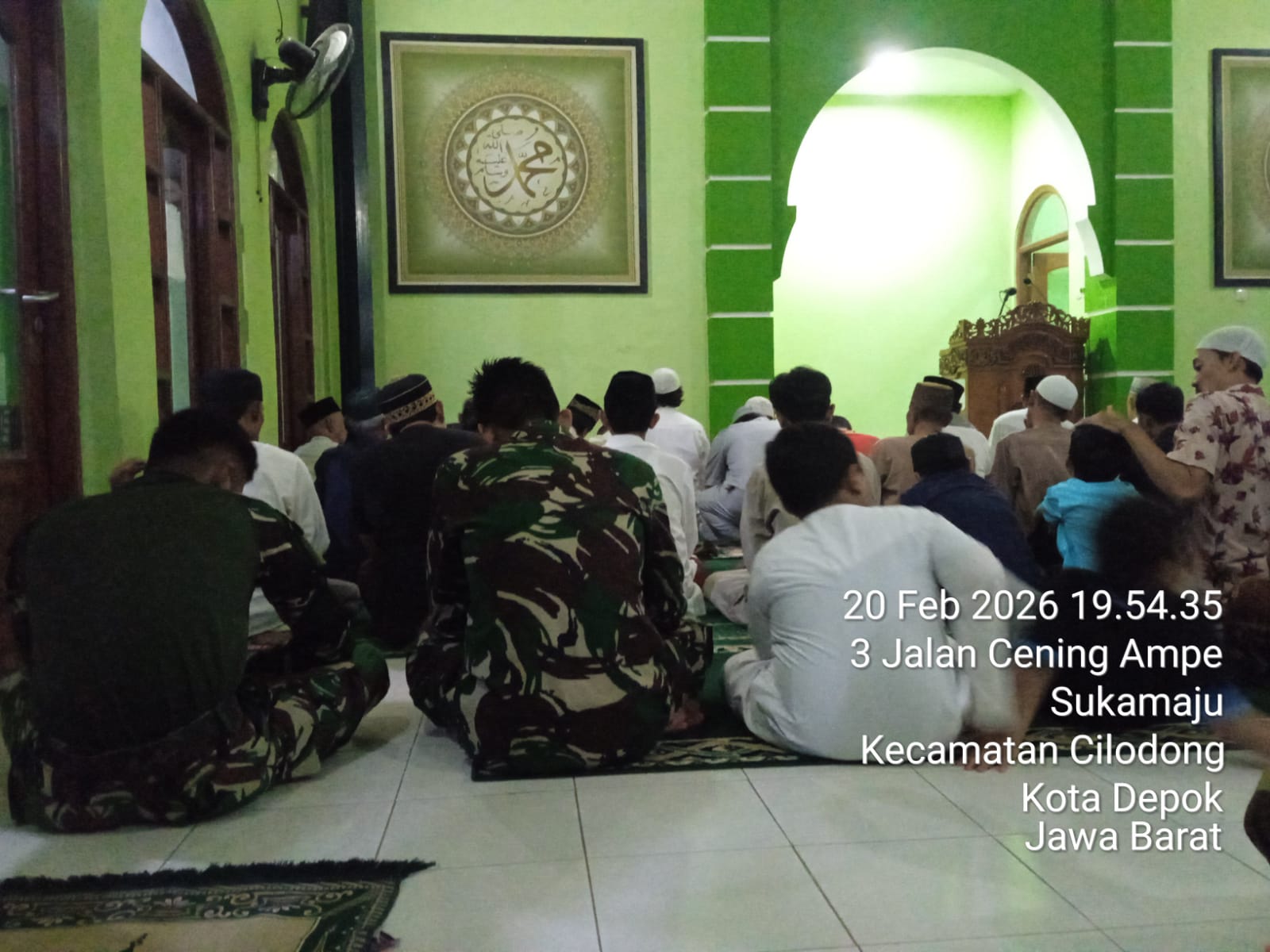 DEPOK, Kompas88Nsws.com – Kebersamaan antara Satgas TMMD Ke-127 TA 2026 Kodim 0508/Depok dan masyarakat kembali terlihat dalam kegiatan Shalat Tarawih berjamaah di Masjid At Taufik, Kelurahan Sukamaju, Kecamatan Cilodong, Kota Depok. Sabtu malam (21/02/2026).