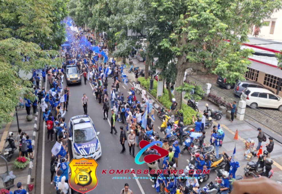 BANDUNG, Kompas88News.com – Ribuan bobotoh memadati pusat Kota Bandung dalam perayaan pawai kemenangan Persib Bandung yang di gelar di kota bandung. Minggu (25/05/2025).