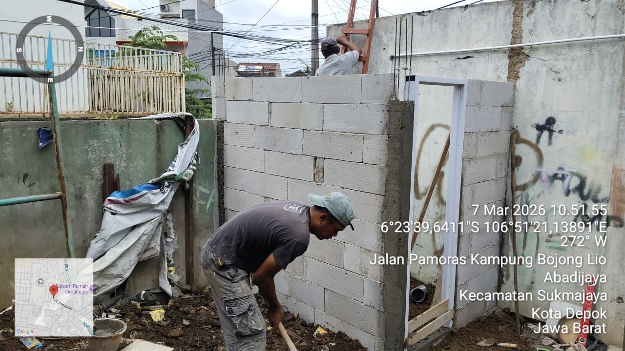 Pembangunan MCK di Perum Mekar Perdana RT 02/22 Kelurahan Abadijaya Kecamatan Sukmajaya telah mencapai 40 persen pengerjaan. Sabtu (7/03/2026).