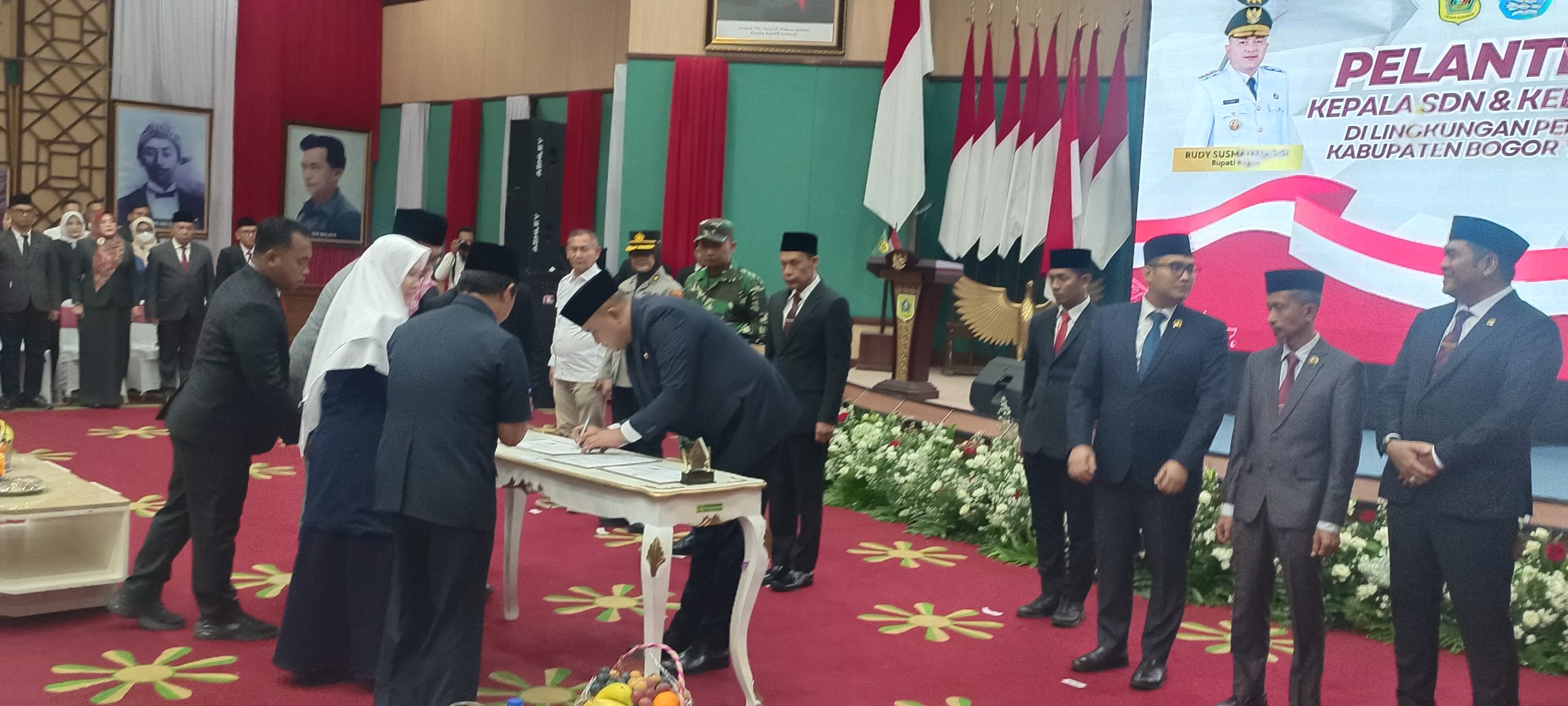 KAB.BOGOR, Kompas88News.com – Pelantikan Kepala Sekolah SDN dan SMPN Se-Kabupaten Bogor di lingkungan pemerintah Kabupaten Bogor. Dihadiri oleh Bupati Bogor Rudy Susmanto, Wakil Bupati Bogor H.Ade Ruhandi, Ketua DPRD Kabupaten Bogor Sastra Winara, Sekretariat Kabupaten Bogor Ajat Rochmat Jatnika, Kadis Dinas Pendidikan Kab.Bogor Bambang Tawekal, Kapolres Kab. Bogor yang mewakili, Dandim 0621 Kab. Bogor yang mewakili, dan 329 Para Kepala Sekolah SDN dan SMPN Se-Kabupaten Bogor.Dimulai pada pukul 20.00 WIB sampai dengan selesai. Bertempat di Gedung Tegar Beriman. Rabu (28/05/2025).