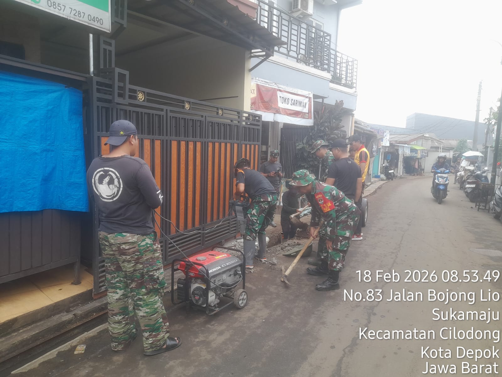 DEPOK, Kompas88News.com – Memasuki hari H+8 pelaksanaan TMMD Ke-127 TA 2026, Kodim 0508/Depok terus mengakselerasi pembangunan drainase di Jl. Bojong Lio RT 03/28, Kelurahan Sukamaju, Kecamatan Cilodong, Kota Depok. Rabu (18/02/2026).