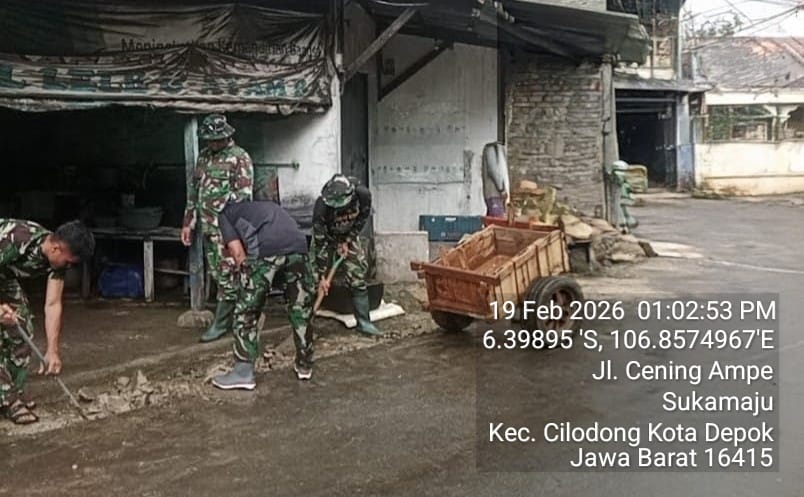 DEPOK, Kompas88News.com – Program TMMD Ke-127 TA 2026 yang dilaksanakan oleh Kodim 0508/Depok terus bergerak memperbaiki infrastruktur lingkungan. Progres pembuatan drainase di Jl. Bojong Lio RT 03/28, Kelurahan Sukamaju, Kecamatan Cilodong, telah mencapai 40 persen. Kamis (19/02/2026).
